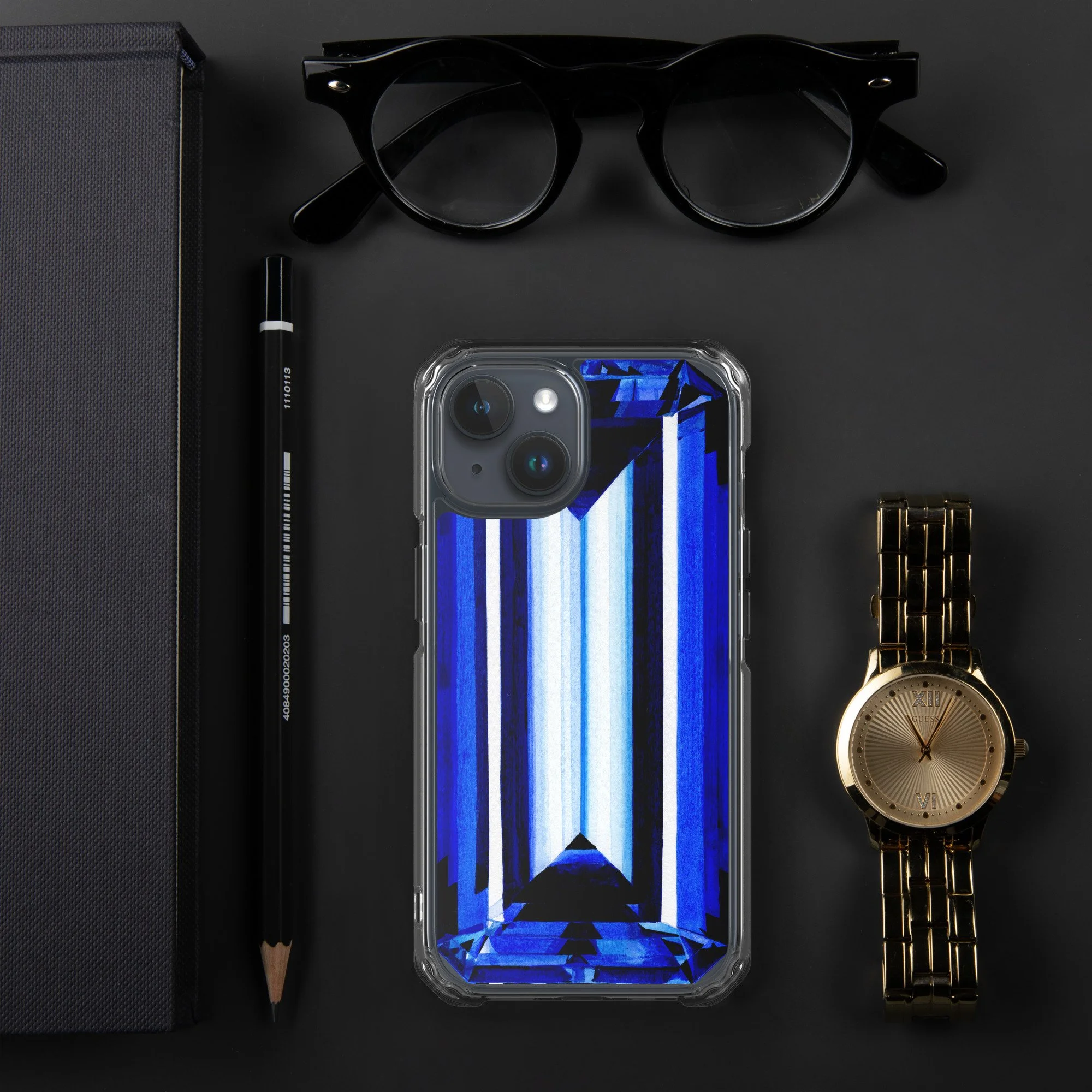 Introducing our stunning phone case adorned with a watercolor emerald cut blue sapphire. This exquisite design captures the essence of a hand-painted masterpiece, meticulously created with watercolors and then skillfully scanned and printed onto the case. The emerald cut shape of the gemstone perfectly aligns with the contours of your phone, creating a truly unique and captivating accessory. The mesmerizing blue hues of the sapphire evoke a sense of elegance and tranquility, while the intricate brushstrokes add a touch of artistic flair. With this phone case, you can carry the beauty of a hand-painted gemstone wherever you go, making a bold and stylish statement. Protect your phone in style and indulge in the artistic fusion of technology and artistry with this one-of-a-kind watercolor emerald cut blue sapphire phone case.